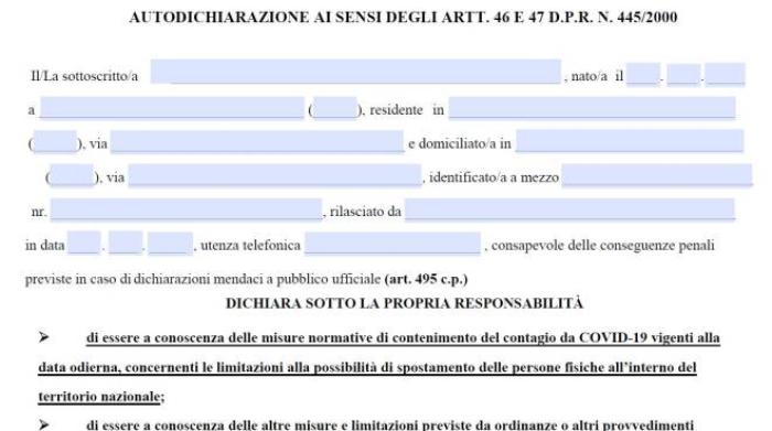 Coronavirus Autocertificazione Spostamenti Ecco Il Nuovo Modulo