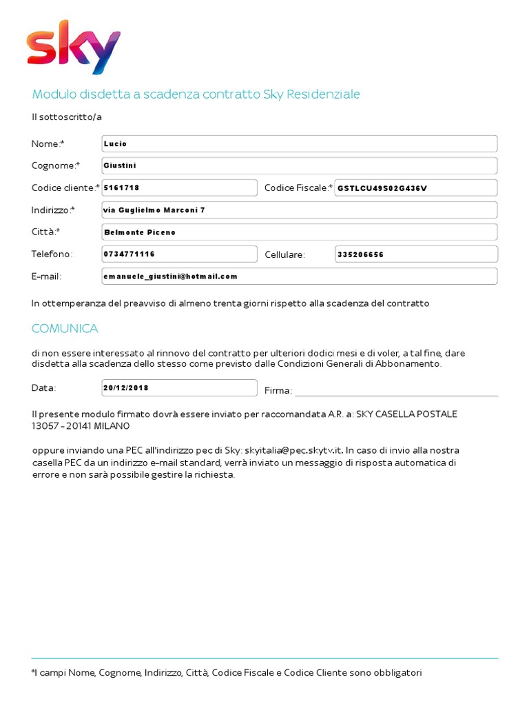 Modulo Disdetta Sky Scadenza X Pdf