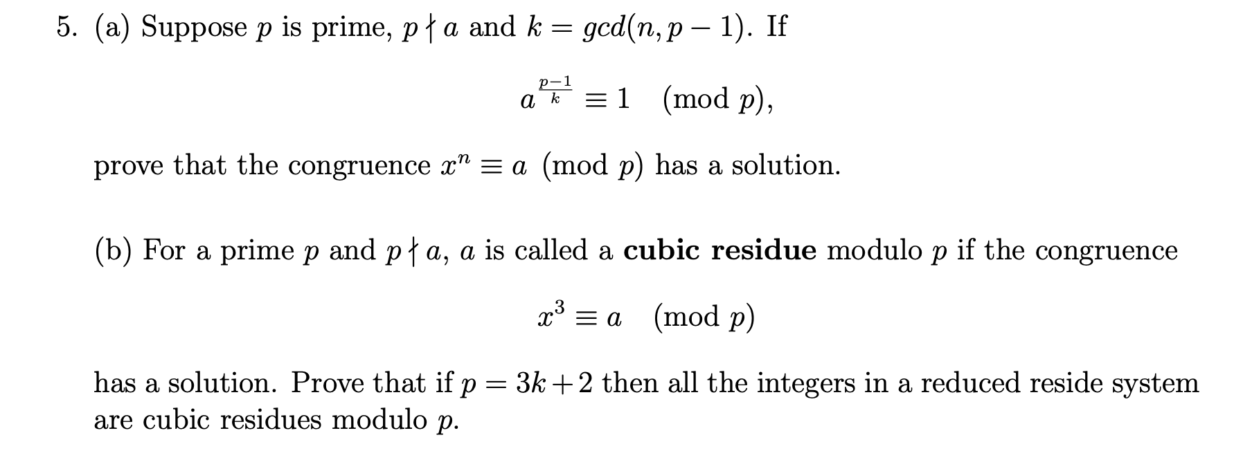 Solved A Suppose P Is Prime P A And K Gcd N P 1 Chegg Com