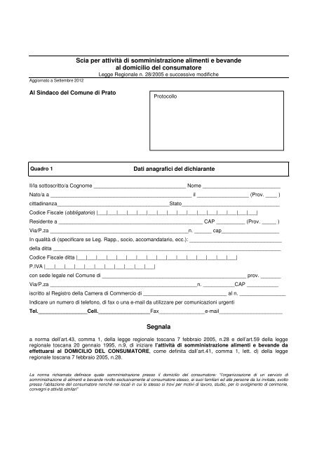 Scia Per Attivita Di Somministrazione Alimenti E Comune Di Prato