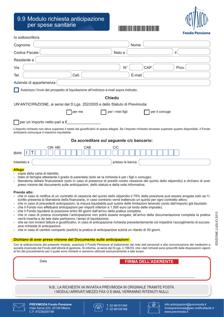 9 9 Modulo Richiesta Anticipazione Per Spese Sanitarie