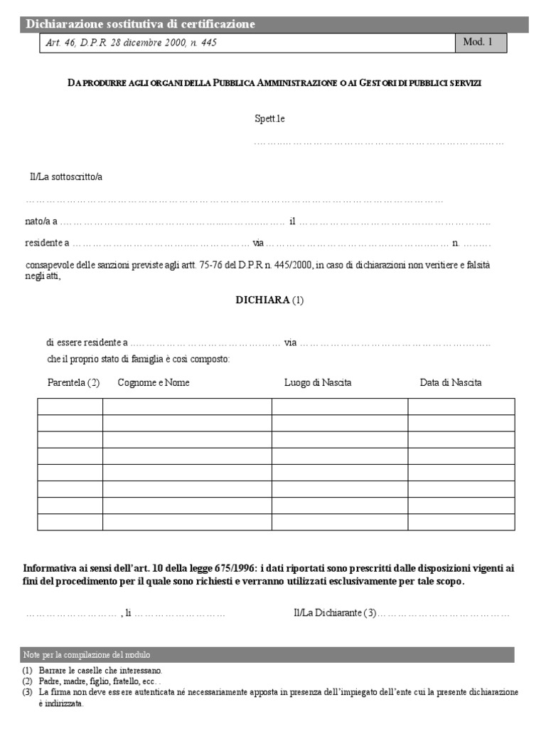 Autocertificazione Stato Di Famiglia Storico Modello Pdf Writer